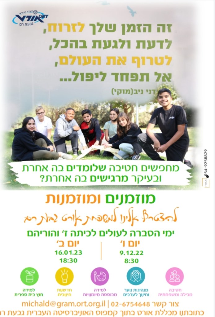 חטיבת הביניים אורט גבעת רם לדף הבית – HOME לשתף לשתף ב-X (נפתח בחלון חדש) X שתף בפייסבוק (נפתח בחלון חדש) פייסבוק אהבתי טוען...