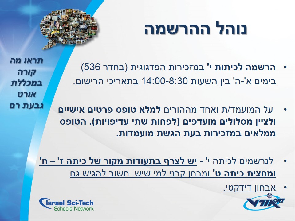 נרשמים לתיכון אורט גבעת רם