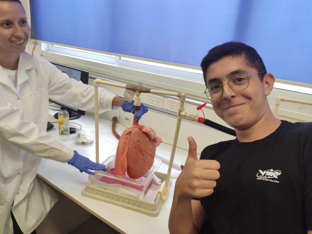 כיתה י' ממגמת "רפואת העתיד" ביום לימוד פיזיולוגיה של מערכת הנשימה, ההובלה והעצבים, במעבדות בלמונטה.