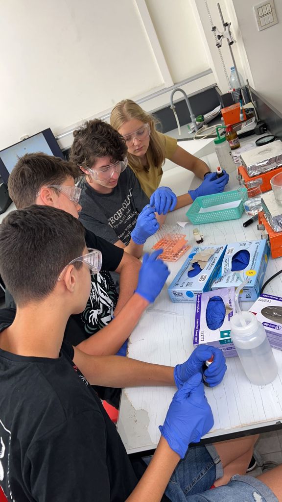 כיתה י"א ממגמת "רפואת העתיד" בפעילות אנליזה כימית וביולוגית, המשמשת לזיהוי פלילי במעבדות בלמונטה.
