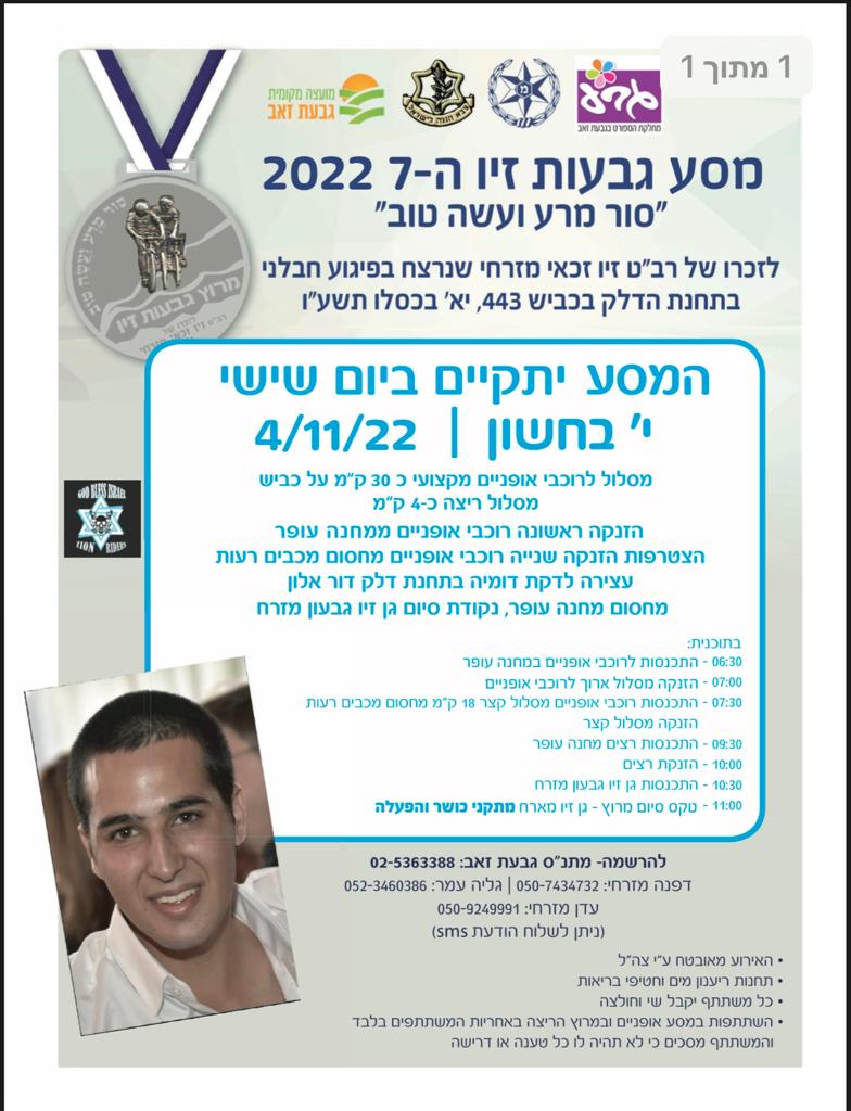 4 בנובמבר מרוץ על שמו של זיו מזרחי ז"ל בוגר מכללת אורט גבעת רם