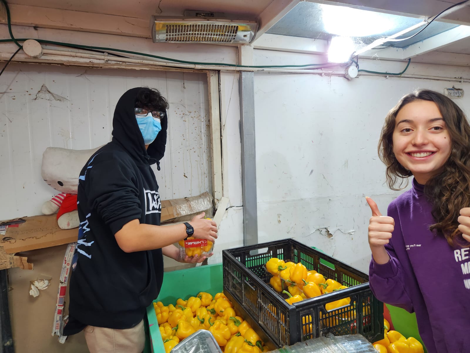 הכנת חבילות מזון לנזקקים במסגרת תרומה לקהילה של תלמידי שכבה י"א.