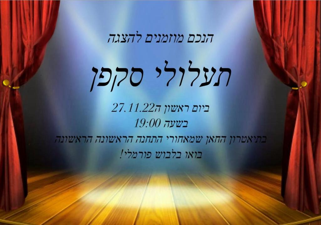 ב 27.11 יציאה שכבה י"א להצגה "תעלולי סקפן" בתיאטרון החאן.