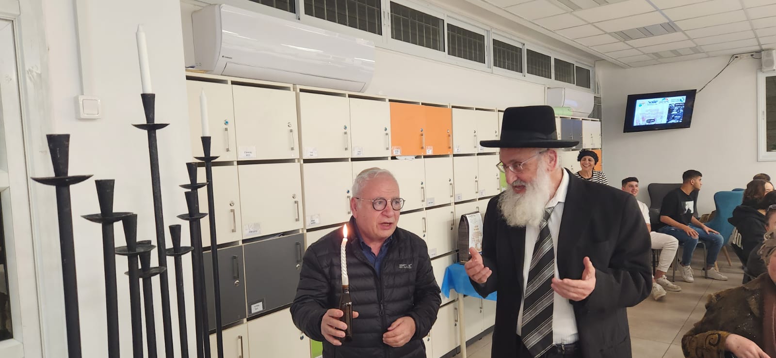 כמה ימים טרום החג הדלקנו שורדי שואה, תלמידים ומורים – בחדר המורים של מכללת אורט, נר חנוכה בצוותא;