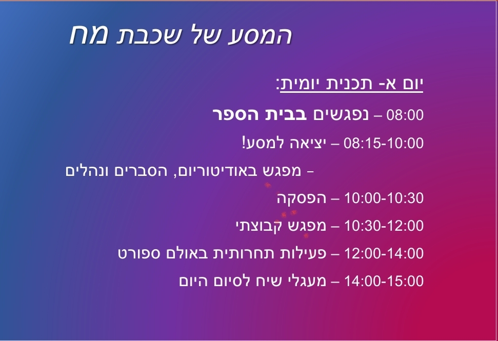 מיקום החדר יפורסם על ידי המחנך/ת.