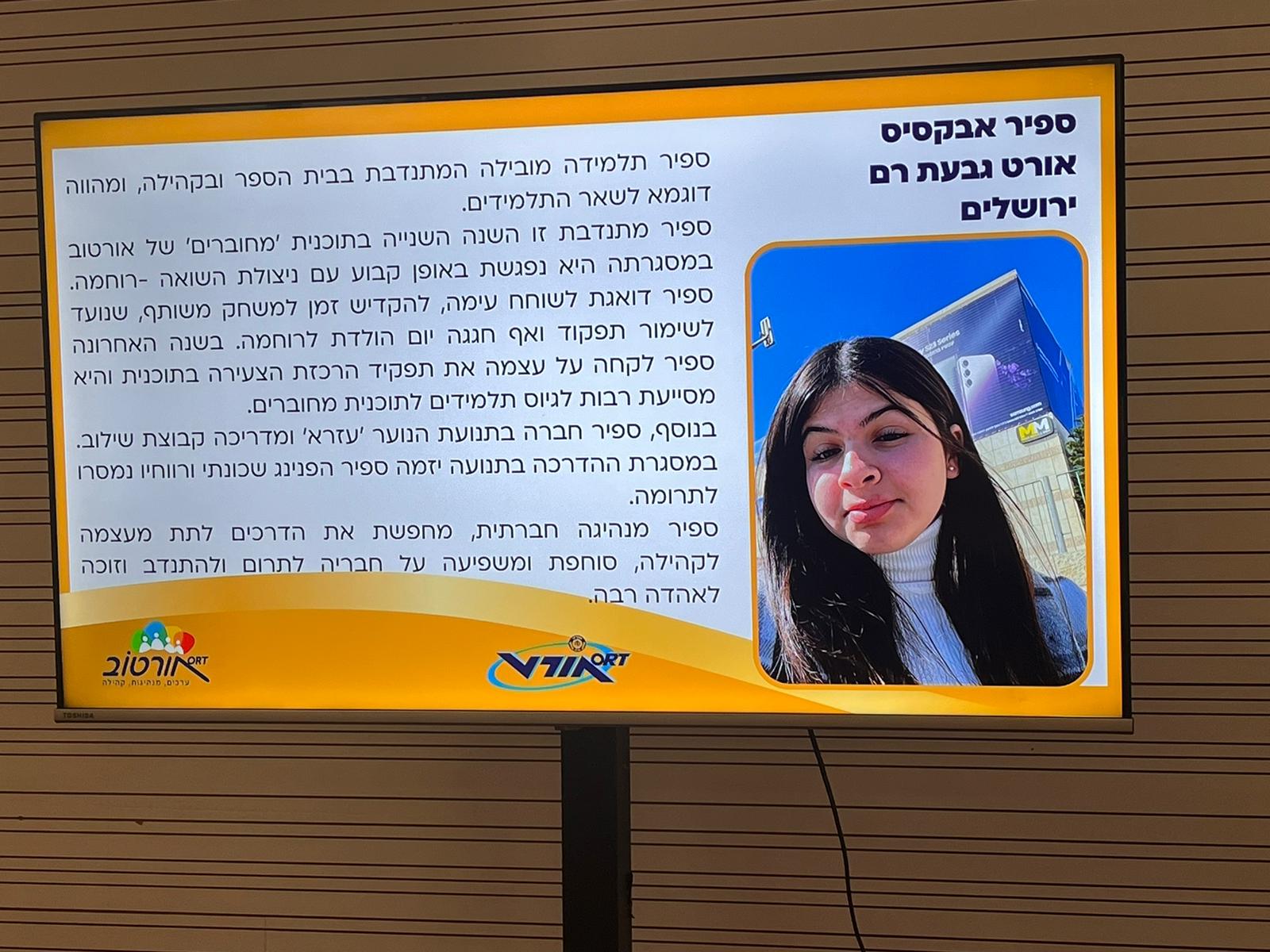 מצטיינת אורטוב (משתתפים בפרויקטים של רשת אורט ישראל) – ספיר אבקסיס.