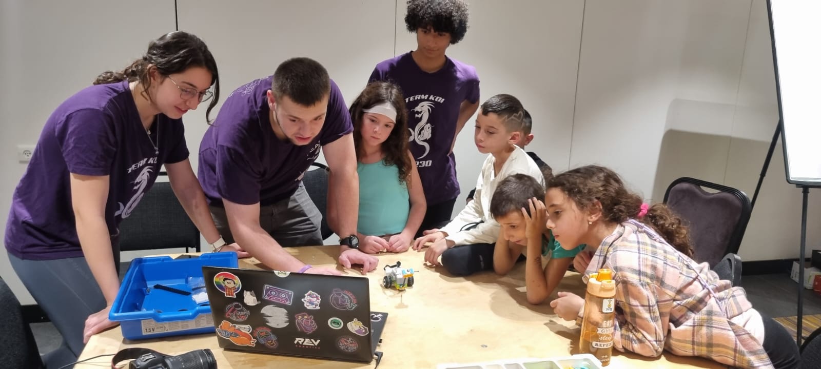 2. תלמידי פרויקט רובוטיקה FRC ביקרו ילדים מפונים והפעילו אותם.